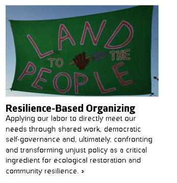 Another important theme that emerges from our survey is that a resilience framework encourages people to make connections between multiple issues, to move away from ‘working in silos’. The tendency of ‘resilience thinking’ to emphasise connections may help to keep ‘the bigger picture’ in mind even as people focus on the here and now, and thus may facilitate building solidarity across multiple issues and constituencies. One respondent, for example, says that resilience “has given me a new angle with which to approach concerns I’ve had for some time; public libraries, climate change, the commons, technology”.