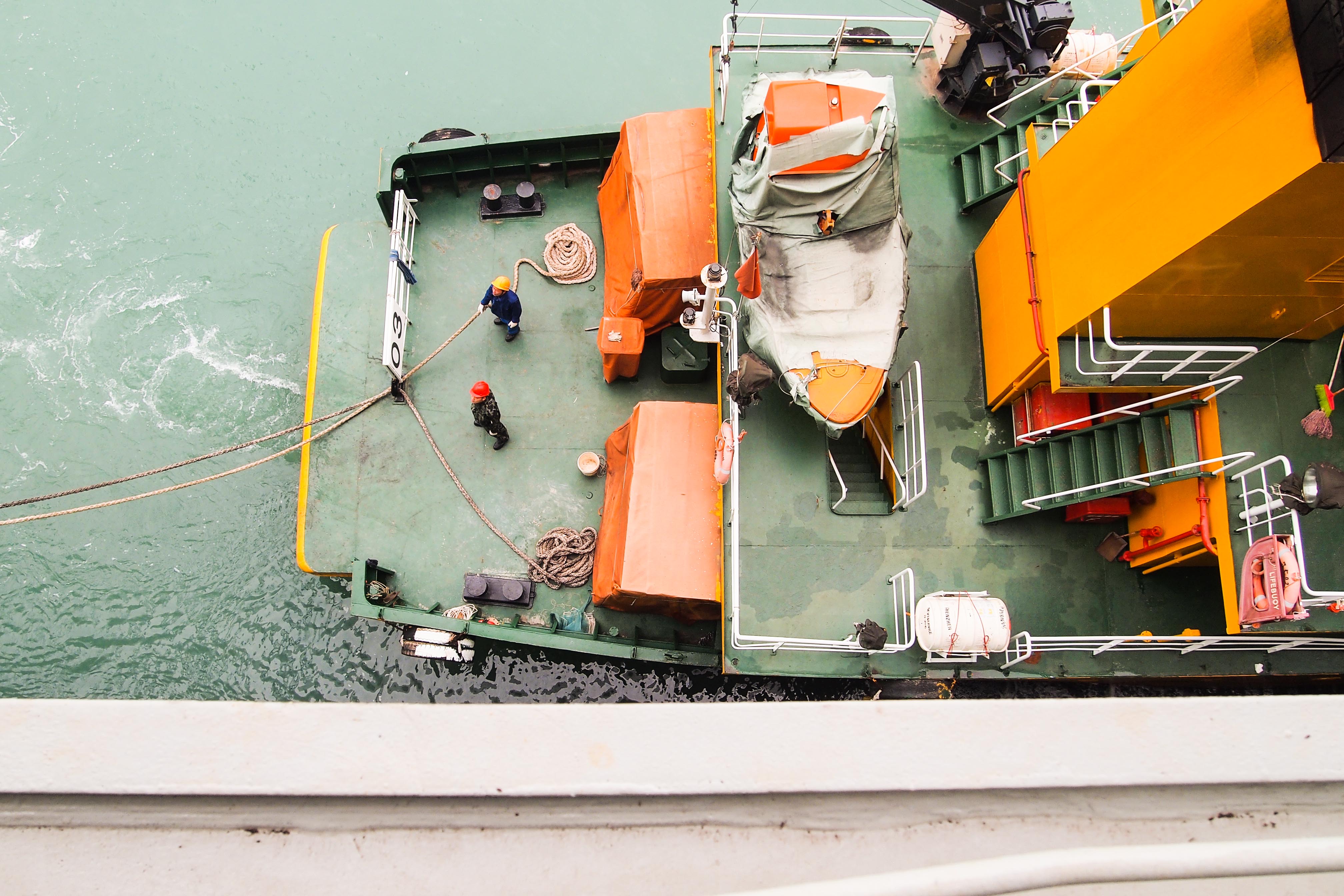 On our thirteenth day at sea, after having been battered by 6 meter waves and snow, gale-force winds and storm, having watched the ship’s skeleton snake and bend with the force of rough seas from within the depths of its passageways, I woke up on a calm, quiet morning to a sea that had turned a lighter shade of blue. From my porthole, delighted, I watched as seagulls weaved in an out of the wind currents above the containers, seaweed merrily skimmed the surface of the ocean, and fishing vessels began dotting the horizon. Land was near. Less than a day later, we drew into the port of Kaohsiung, Taiwan. Terminals stretched for miles from two harbor mouths, the air a humid, sticky breeze, the pilot’s Mandarin accent sounding suddenly like home.