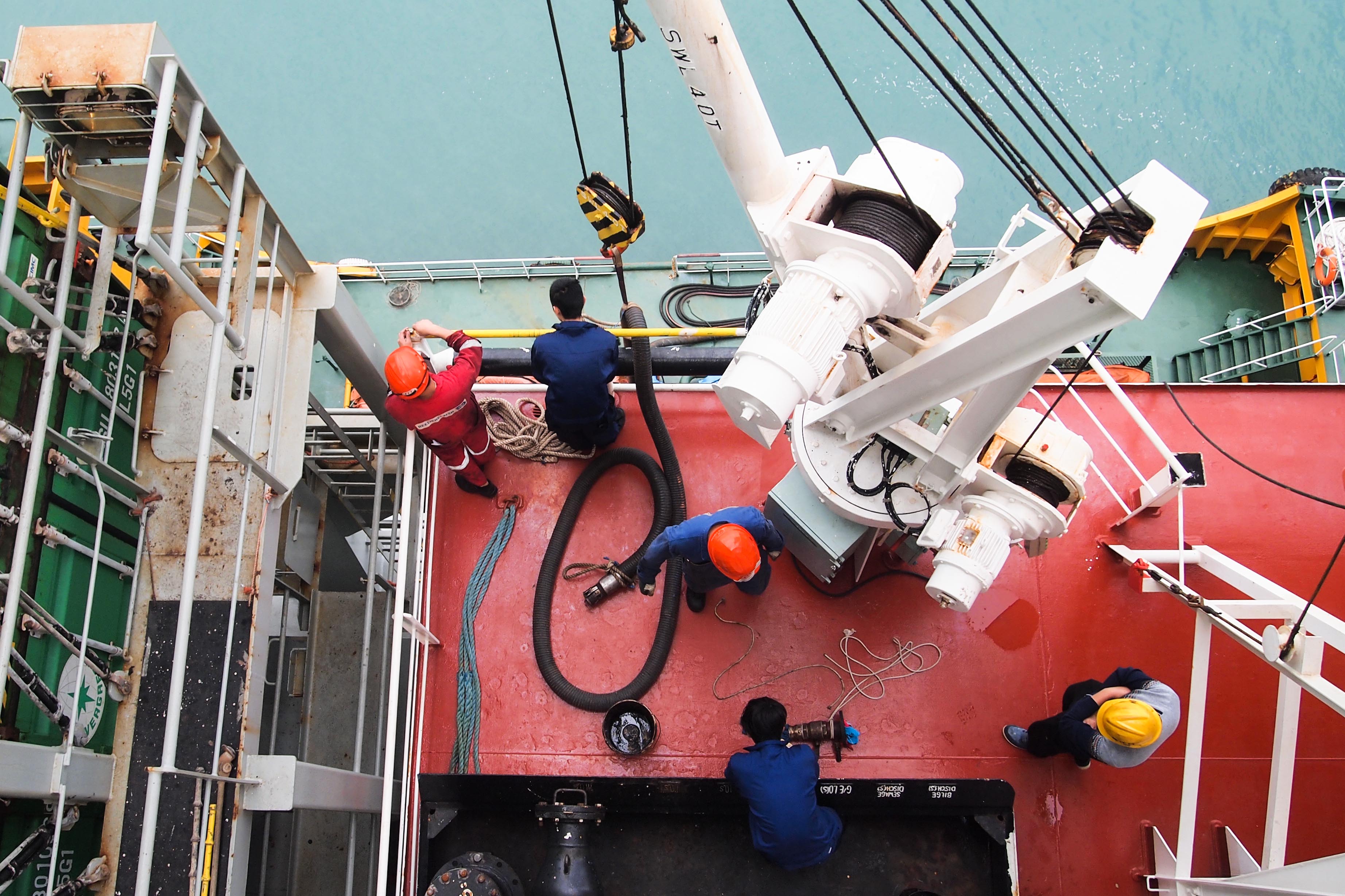 In China, however, waste is business. Not only are a ship’s eastbound containers laden with refuse and scrap; the endlessly traveling ship is itself a massive waste-producer. As we neared the Chinese ports, the chief engineer and captain ran over the long list of overhauls and waste management procedures they would have to accomplish on top of the rush of cargo operations. In Hong Kong, I watched as a crane lifted a hulking mountain of garbage collected over a month at sea into a waiting barge below, the smell of heavy fuel and rotten food mixing together in the humid air. In Yantian, a sludge disposal company with a freshly-painted barge drew alongside the Ever Cthulhu in the harbor in the afternoon, and I watched as it lifted a pipe by crane onto the ship’s deck, and pumped 75 tons of sludge from the engine room’s tanks into the barge waiting below. The business of sludge management is “so lucrative”, the chief engineer says, that while companies in the EU charge shippers for its disposal, in China, companies purchase this black, sticky mess. When put through a refining process, half of this sludge is usable as fuel; the other half is burned off in a waste plant. So profitable is this business that after they were done with the job, the company sent gifts: the Chief Engineer received a few beautiful calendars, and the crew ten boxes of Tsing Tao beer.