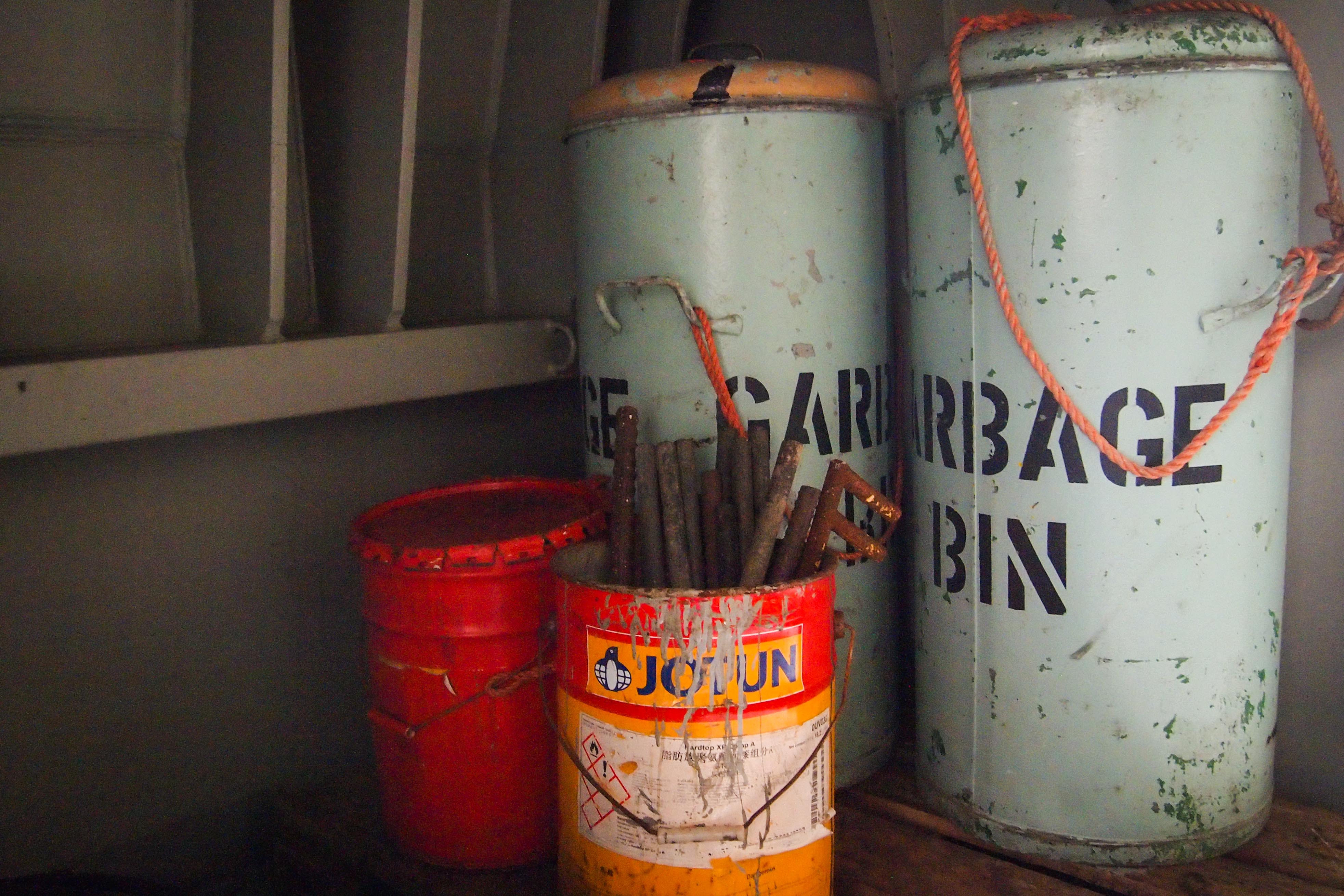 One of my first conversations with the captain when we were still in Oakland was about this very vexing problem of waste: as we experienced longer and longer delays at the US ports, the primary question on the captain’s mind was what to do with all the garbage the ship had accumulated. Recent US environmental regulations prohibited the release of these wastes into the 24-mile coastal waters off the US shoreline, and their presence was starting to give the captain a headache. “Grey water” – the collected dirty liquid from laundry machines and shower stalls, was nearing capacity in the tanks, so the laundry room had to close. Sewage could not be disposed, and food waste, biodegradable and otherwise dumped into the ocean every three days, was gathering the smell of rot and decay into corners of the deck. “Apparently,” said the chief mate, “the US does not want to shit where it eats.” – and so it protects its waters from waste, making the world’s ocean into its toilet bowl.
