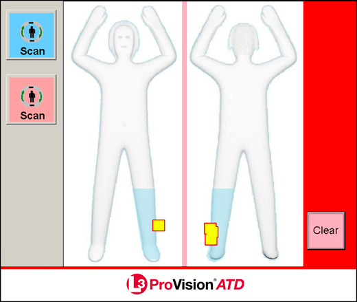 See the pink and blue buttons? Security personal are supposed to tell the machines what kinds of bodies to expect based on gender presentation. Image from TSA website.