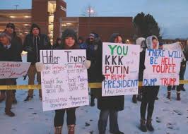 In the wake of the election, people are rejecting the idea that Trump represents them in office. Academics and journalists are calling attention to what loyalty and patriotism mean in the context of such a divisive election. President Obama has called for everyone to rally to Trump, and he asked Trump to make everyone feel included in his America. Protestors oppose this view with the simple message that “Trump is not my president.”