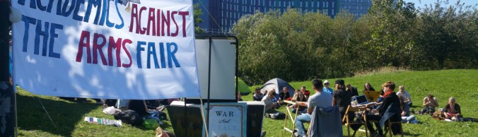 Two weeks ago, the Stop the Arms Fair coalition held a week of action in an attempt to prevent the arms fair from taking place. Anti-militarist groups, working in solidarity with activists from countries which have suffered the brutal consequences of the arms trade, held a series of events to disrupt the setup of DSEI. One event during this week was ‘Conference at the Gates’, an academic conference held in front of the arms fair, where participants debated ideas about militarism while taking action to resist it.