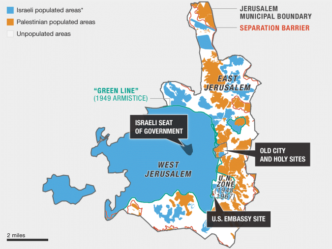 Figure 4: Political Map of Jerusalem (Source: http://brewminate.com/jerusalems-political-map/; Map data by Daniel Seidemann/Terrestrial Jerusalem. Labeling by NPR. Credit: Daniel Estrin, Alyson Hurt, Larry Kaplow, Brittany Mayes and Greg Myre/NPR)
