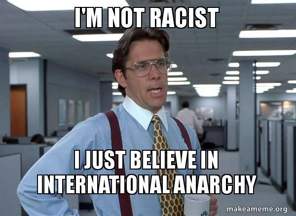 - Finally, the dyad anarchy/security draws our eyes away from history and anchors itself in a form of eternal present-ism. Even if systems that were once anarchic have now evolved in ways that have made them deeply hierarchical, rather than explore the consequences, depths and ways to overcome such hierarchy, the binary continually hits the “reset” button to forego those explorations and instead stay preoccupied with the most contemporaneous forms of the operation of security/anarchy. To illustrate: it asks “how does North Korea exemplify the dangers of an anarchic interstate system and how shall “we” respond to that threat to “our” security?” – rather than ask “what might be the impact of one of the most horrendously racist and violent wars even by the standards of the bloodiest century, followed by partition, followed by decades of economic sanctions, and followed by the multiple examples of third world leaders deposed for their recalcitrance, on the perceptions, worldviews, calculations, and actions of the current North Korean regime?”