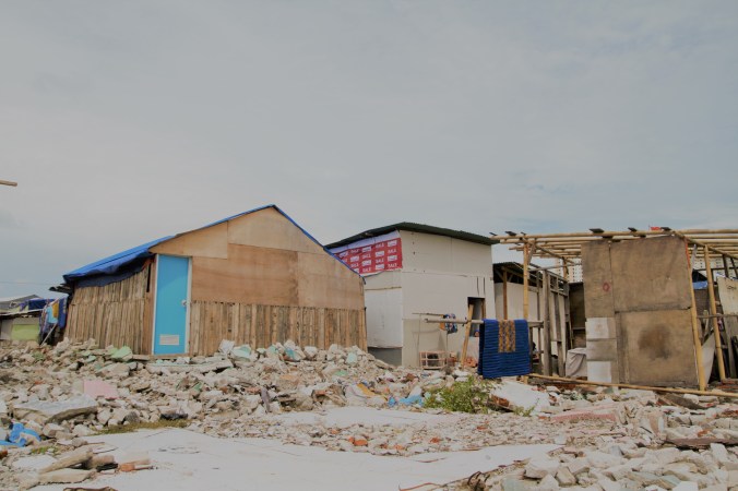 Occupation shelters on the rubble of demolished homes, Kampung Akuarium, 2017