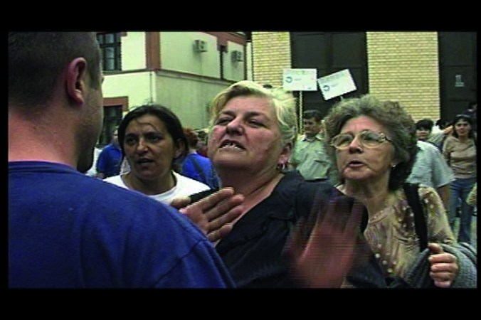 Tamara Vukov and Bojana Videkanić’s works both deal with the other side of the narrative of the recent history of Yugoslavia. Each artist explores various aspects of the economic, political, and social impacts of the so-called transition (a process started in its full force after the wars subsided), as they highlight the conditions of life in the region that has been deeply and systematically disemboweled by various neoliberal policies. Vukov’s long-term, meticulously researched project entitled Tranzicija/Transition consists of two documentaries which deal with two different factories in Serbia. With each factory–– Jugoremedija (Zrenjanin) and Zastava (Kragujevac)–– Vukov documents the struggles of workers to salvage their livelihoods, and the production from the relentless process of dispossession and violence enacted by local and international oligarchs. Vukov’s films offer a view into the belly of the beast so to speak, as we as viewers witness the process of accelerated privatization program followed by mass layoffs, dislocation and impoverishment, all of which came on the heels of years of war, shock therapy, and hyperinflation. Similarly to Vukov, in iztranzicionisana/Transitioned Out, Videkanic is interested in the aftermath of the war, and the violent and insidious processes of transition. Her focus however, is more particularly the lives of women under the transition, and how lives of women from her generation, her mother’s, and grandmother’s generations have been completely uprooted by social, cultural and political processes. These processes have created what theorist Rade Zinaić calls a (sub)proletariat class, people who are no longer proletariat, as their lives have been disjointed from all forms of group and political action and social processes.6 Again, women have taken the brunt of this onslaught.