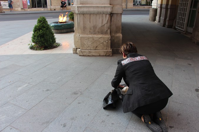 Bojana Videkanić is a performance artist and an art historian born in Bosnia and Herzegovina (former Yugoslavia). She became a stateless person after the fall of her native country and came to Canada as a government-sponsored refugee in 1995. Her artistic practice mines personal experiences of displacement, movement, and identity as these intersect with larger political, social and cultural questions. Her most recent work deals with the transformation of her native country into a law-free zone for the development of various neo-liberal capitalist projects and new forms of colonization. Videkanic is an assistant professor in fine arts at the University of Waterloo, and a board member of 7a*11d International Performance Art Festival in Toronto. She has presented her work at performance festivals such as Nuit Blanche Toronto, 7a*11d International Performance Art Festival Toronto, MS:T International Festival from Calgary, Hemispherica, Montreal, IPA Platform and Workshop, Bristol, IMAFestival, Serbia. Videkanic also curates.