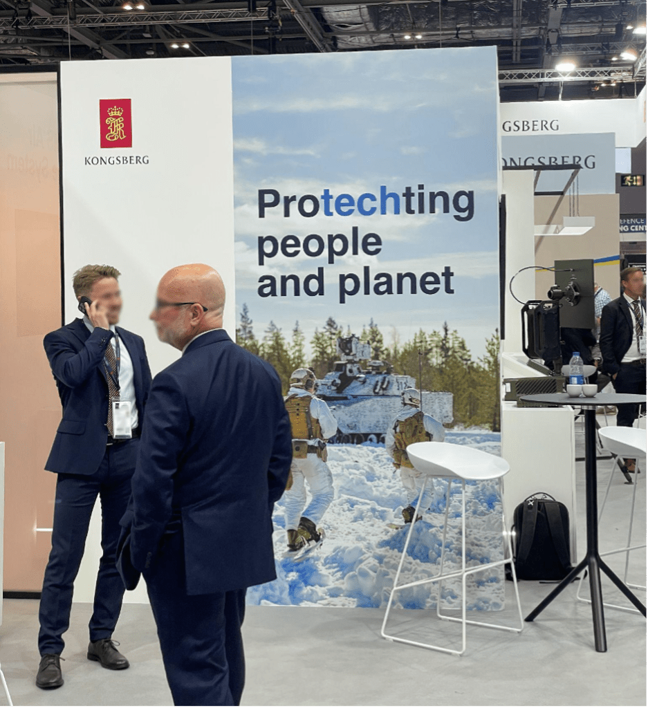 Norwegian Kongsberg, marketing sustainability, DSEI 2023. Credit: N.E.