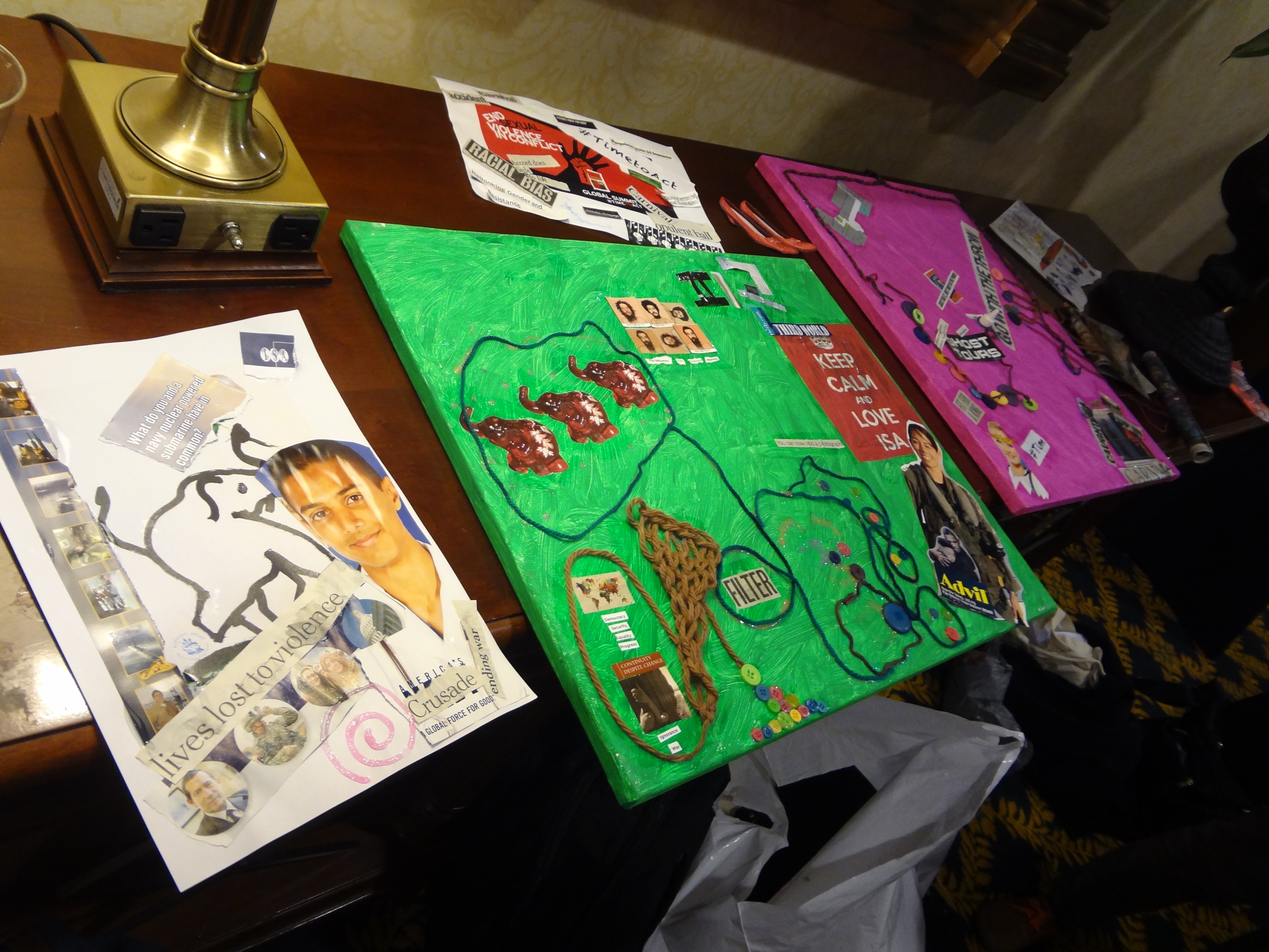 In their performance/situation entitled ‘nEUROlogy’, presented at Geneva’s Bâtiment d’Art Contemporain in October 2015, FYTA attempted a far-right medico-theological resuscitation of the European project. The performance was staged in a confined room that FYTA describe as ‘something between the basement of a cult and Clockwork Orange’s reform clinic’—perhaps as apt a description as any of the contemporary European Union as seen from the perspective of its more disgruntled members. In Part I of this triptych, entitled ‘Eden’, FYTA assume the role of the high priests of the European right. Dressed in the red robes of cardinals, they stand before the altar of ‘Europe’, performing the rituals and incantations on which its very sustenance seems to depend. The soundscape of the performance in this segment is revealing in the way FYTA give voice to the utterly banal sentiments of xenophobic nationalists (‘Our environment is our home, our blood is what connects us to the soil, earth is our blood; when we defend our land we defend our blood’) against a disorienting musical backdrop of what sounds like Mongolian throat singing—as if to draw attention to the naturalisation of the arbitrary that is constitutive of all nationalisms. In Part II (‘The Garden’), Europe lies prostrate on a stretcher, covered by her flag. She might be dead, although the beep of machinery suggests life support. Here FYTA appear in the garb of medics who, even as they mill around the patient to no great effect, intone ‘we must remain free’. On the wall hangs a sign that reads ‘Rester Frei!’, the unfamiliar linguistic mashup seeming to gesture at the discontents of Franco-German alliance (or maybe this is just how the Swiss speak). Who killed Europe? On this question the cardinals are unambiguous: barbarians, cultural relativism, immigrants (‘how many people can you fit in the smallest of all continents!’), Islam. On the ground lies a pile of blood spattered posters—mass-produced, as if for a large protest—that read ‘Je suis Voltaire’. Beethoven’s ‘Ode to Joy’, the Anthem of Europe, ushers in Part III (‘Hell’). One thinks of the orchestra of the Titanic playing music to calm the passengers as the ship sinks.