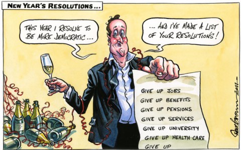 This is the first in a series of posts that look at the political implications of the ongoing global economic crisis. I begin by examining the way that crisis is being used to attack the very idea of democracy through an assertion of the political imperatives of “the market” and the violation, bending and re-writing of the law by capitalist elites. I conclude by laying out how understanding the economic crisis in political terms shapes our ability to respond to it.