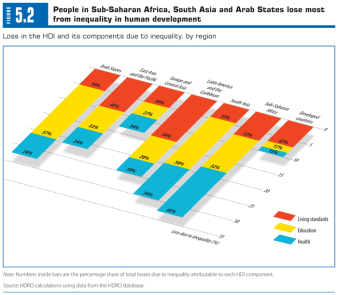 Inequality as an issue however poses a much more substantive threat to the international development agenda when pushed too far – not only does it cast doubt on the shining beaconof the self-made rich in the global South, but specifically, it starts to push against the foundational myth that ‘development abroad’ can be achieved with no corresponding change in the fortunes of ‘developed’ countries, a key threat to donor sanguinity and compliance with the UNDP’s more radical agendas. After all, if it is true within countries that vast inequalities impact on quality of life through skewing access to the goods that constitute human well-being, why would this also not be true between countries? The nonsense and yet widespread idea that some countries merely have to ‘catch up’ with others is belied by the inequality point but poses the much harder question for western countries and populaces to deal with: do I support international development enough to sacrifice any aspect of my own well-being?